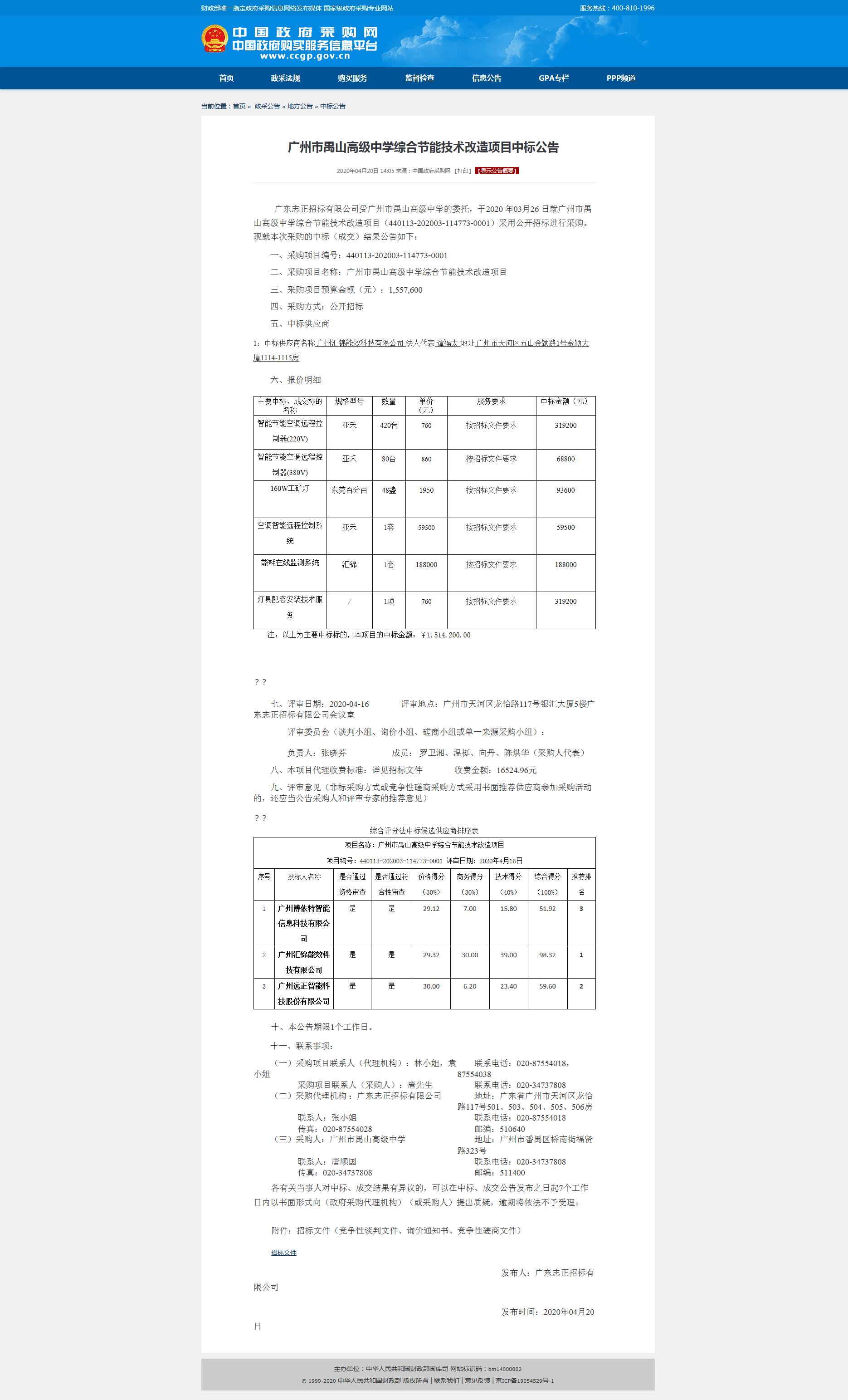 廣東志正招標(biāo)有限公司受廣州市禺山高級中學(xué)的委托,于2020 0326 日就廣州市禺山高級中學(xué)綜合節(jié)能技術(shù)改造項目