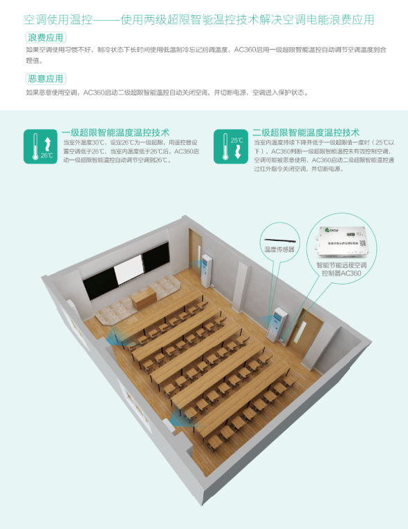 無線物聯(lián)網(wǎng)LORA技術(shù)的教室空調(diào)節(jié)電管理系統(tǒng),采用了廣州派谷旗下產(chǎn)品智能節(jié)能遠程空調(diào)控制器AC360-LORA