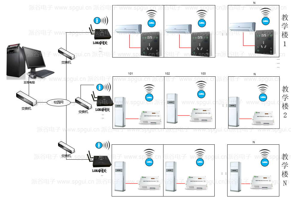 基于電力辦公區(qū) “強電磁干擾、多層分散布局、多品牌設(shè)備混雜” 的核心特性,最終選定廣州派谷 LoRa 通訊系列空調(diào)節(jié)能控制系統(tǒng),構(gòu)建 “終端智能控制 + LoRa 無線傳輸 + 云端平臺管理” 的三層架構(gòu),核心選型邏輯圍繞 “場景適配” 展開,而非單純追求設(shè)備參數(shù)。?